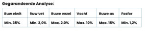 Ingrediënten: Vismeel, tarwebloem, tarwekiemmeel, gedroogde