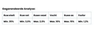 maïseiwitmeel, chitine, gedroogd zeewiermeel, knoflook, cholinechloride,